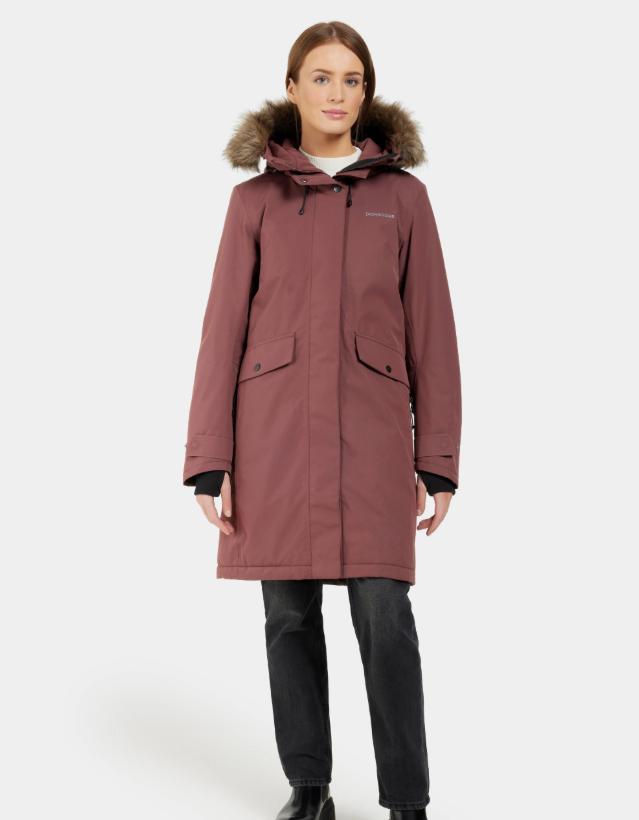 Erika er en tidløs og stilig parkas som kombinerer funksjonalitet med et elegant design. Den er perfekt for utendørsaktiviteter der du trenger et plagg som både fungerer godt og ser bra ut. Parkasen er vann- og vindtett med tapede sømmer og laget av et pustende materiale, noe som gjør den ideell for alle værforhold.